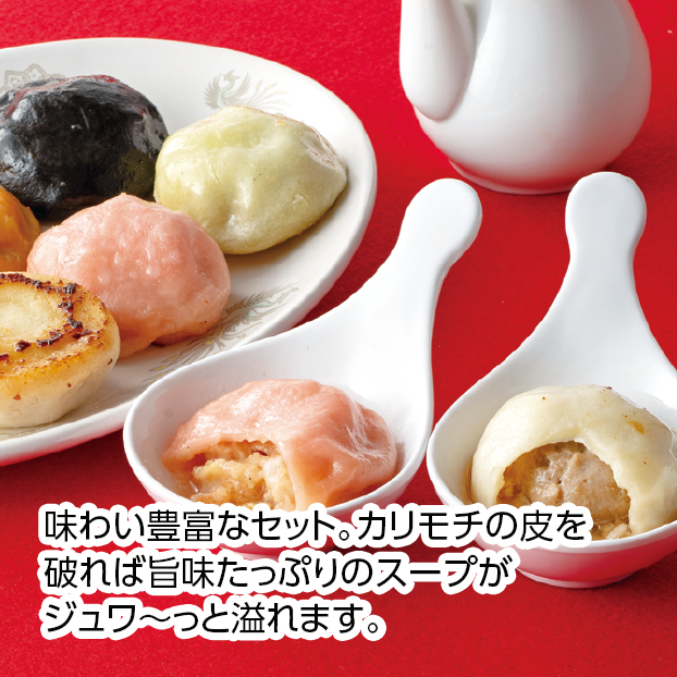 味わい豊富なセット。カリモチの皮を破れば旨味たっぷりのスープがジュワ~っと溢れます。