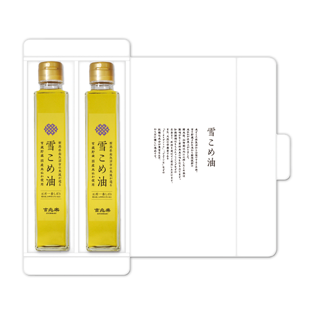 雪で貯蔵された米から出来た鮮度抜群の米ぬかを、精米後24時間以内に圧搾抽出したこめ油です。自然由来の味わいを楽しめる、抗酸化成分が豊富でからだに優しい逸品です。