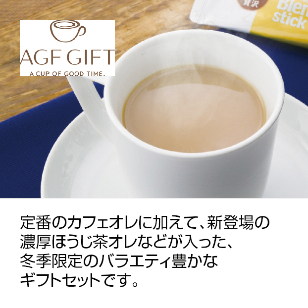 定番のカフェオレに加えて、新登場の濃厚ほうじ茶オレなどが入った、冬季限定のバラエティ豊かなギフトセットです。