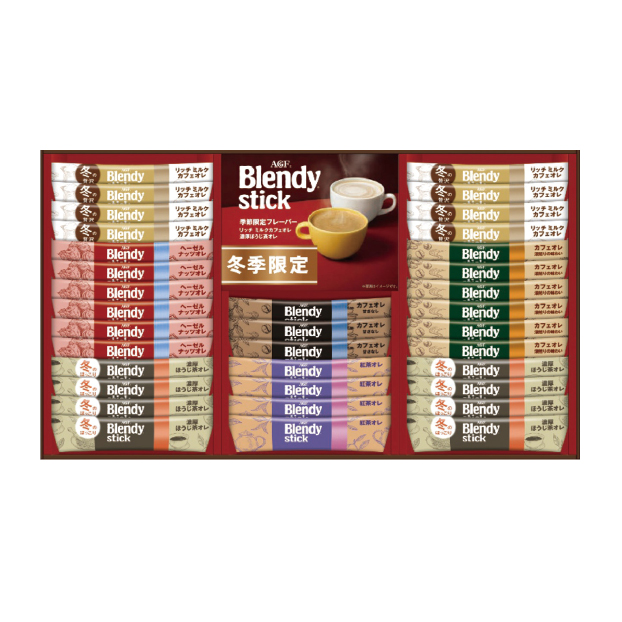 | 内容量 | ブレンディスティック(カフェオレ14g×6本・カフェオレ甘さなし11.4g×3本・紅茶オレ11g×4本・ヘーゼルナッツオレ11g×6本・リッチミルクカフェオレ8.9g・濃厚ほうじ茶オレ11.7g 各8本) |
