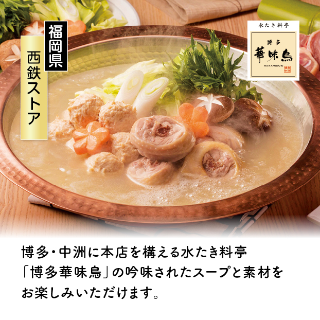 博多・中洲に本店を構える水たき料亭「博多華味鳥」の吟味されたスープと素材をお楽しみいただけます。