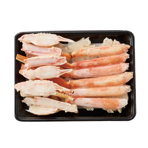 食べやすいように脚は殻を半分剥いています。解凍してそのままお召し上がりいただいたり、焼き蟹に最適です。