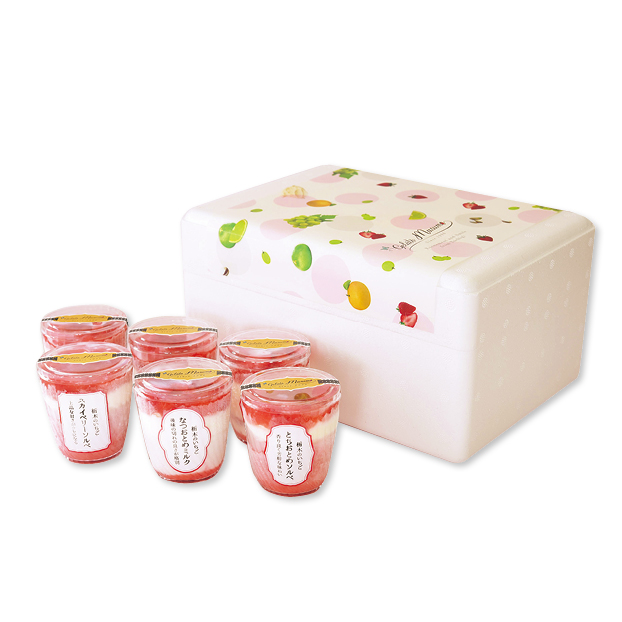 | 内容量 | とちあいかミルク・とちあいかソルベ・スカイベリーミルク・スカイベリーソルベ・なつおとめミルク・なつおとめソルベ 各160ml×各1 |