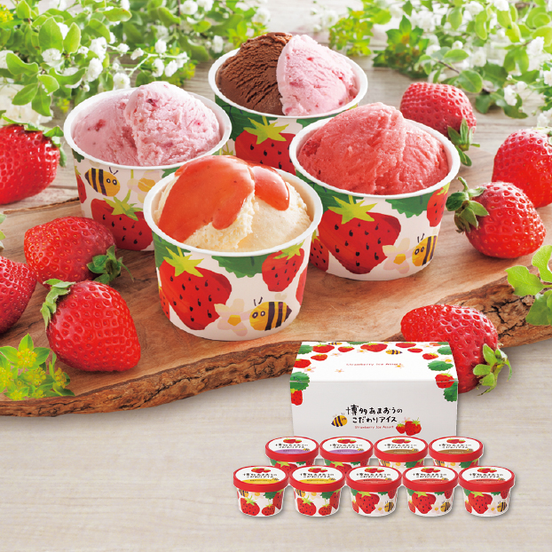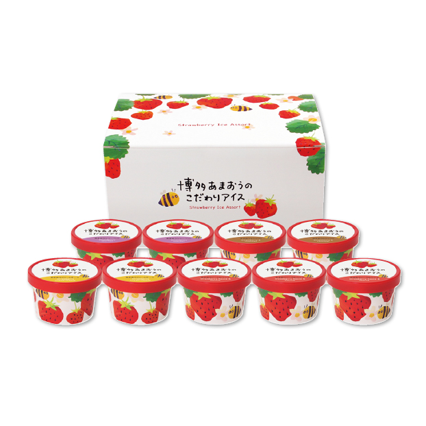 | 内容量 | あまおうソース&バニラ58ml×3、あまおう&ショコラ76ml×2、あまおうクリームチーズ・あまおうシャーベット各78ml×各2 |