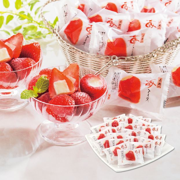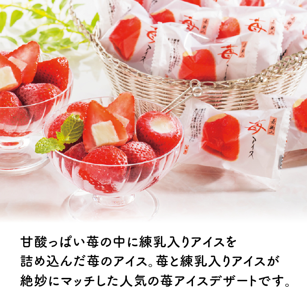甘酸っぱい苺の中に練乳入りアイスを詰め込んだ苺のアイス。苺と練乳入りアイスが絶妙にマッチした人気の苺アイスデザートです。