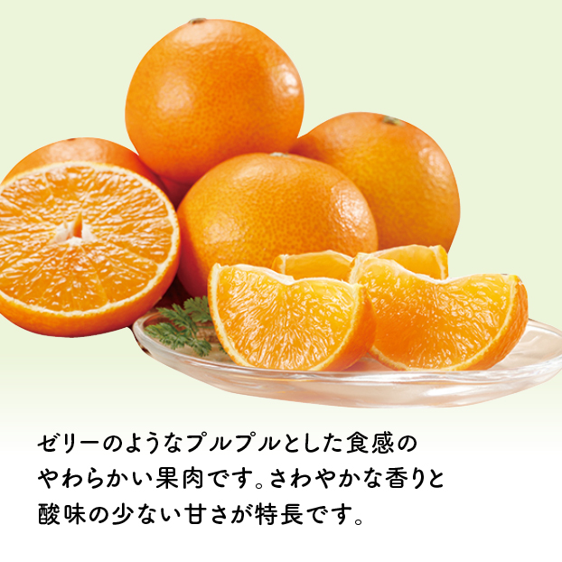 ゼリーのようなプルプルとした食感のやわらかい果肉です。さわやかな香りと酸味の少ない甘さが特長です。