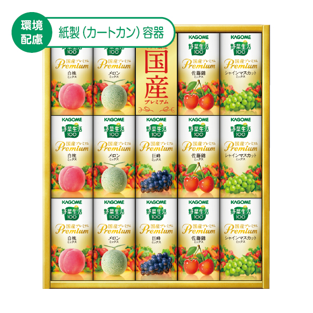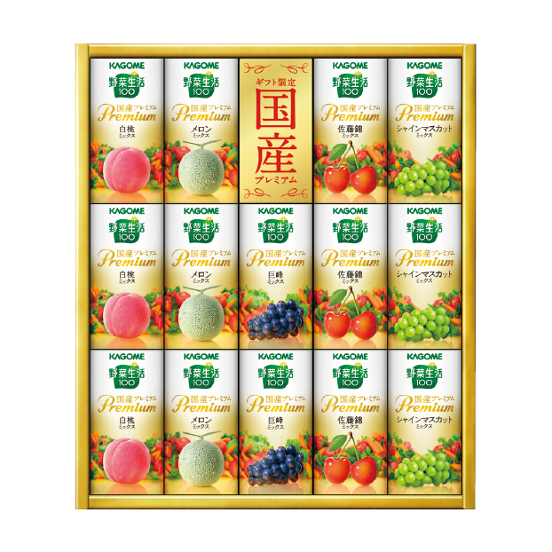 | 内容量 | 野菜生活100国産プレミアム(白桃ミックス・メロンミックス・佐藤錦ミックス・シャインマスカットミックス)各125ml×各3、野菜生活100国産プレミアム巨峰ミックス125ml×2 |