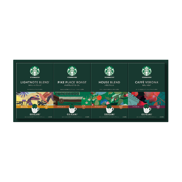 | 内容量 | ハウスブレンド・パイクプレイスロースト・カフェベロナ・ライトノートブレンド各9g×各4 |