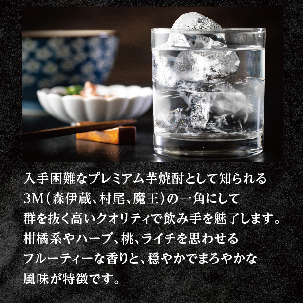 入手困難なプレミアム芋焼酎として知られる3M(森伊蔵、村尾、魔王)の一角にして郡を抜く高いクオリティで飲み手を魅了する味わい