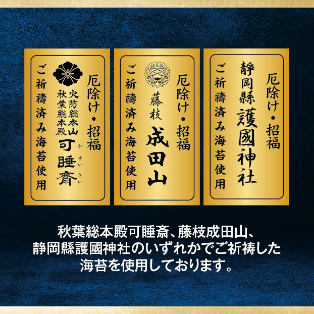 その年の年神様がいる方向、「恵方」を向いて巻き寿司を食べることで一年の幸せを願います。| 原材料名 | 豚肉ヒレカツ巻(国産うるち米)、キンパ巻(国産うるち米)、黒毛和牛すき焼き風カルビ巻(国産うるち米)/加工デンプン、調味料(アミノ酸等)、増粘剤(増粘多糖類、加工デンプン)、着色料(カラメル、紅麹、ウコン、カロチン)、pH調整剤、トレハロース、ソルビット、リン酸塩(Na)、グリシン、酸化ケイ素、チアミン、乳化剤、酸化防止剤(V.C)、グリセリンエステル、酵素、香辛料、香料、カゼインNa、酸味料、シリコーン、(一部にかに・小麦・卵・乳成分・牛肉・ごま・大豆・鶏肉・豚肉・りんご・ゼラチンを含む) |