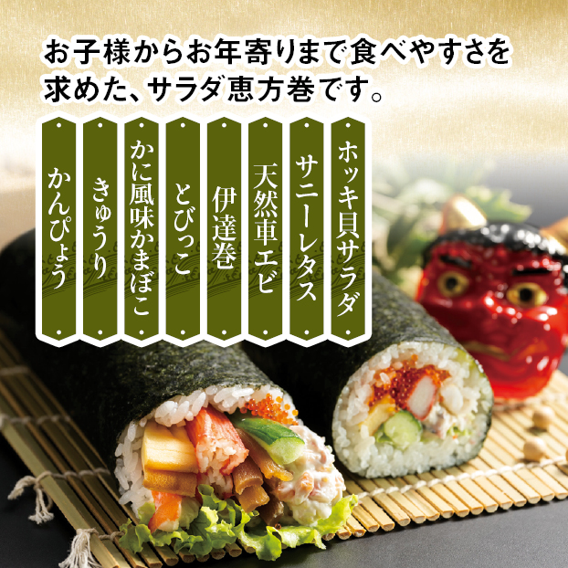 お子様からお年寄りまで食べやすさを求めた、サラダ恵方巻です。