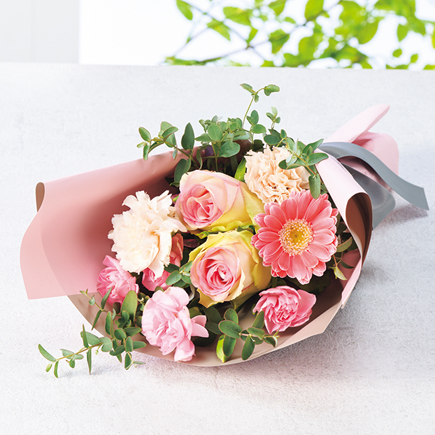 ピンクのお花が大好きなお母さんのプレゼントにおすすめ、ピンクを主役にしたブーケです。
