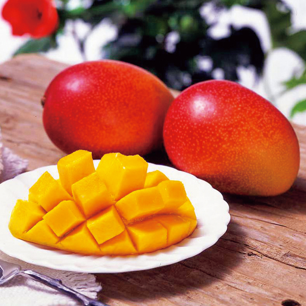 温室で通常よりも早く栽培したマンゴーが完熟して自然に落下するまでじっと待ち収穫した甘いマンゴーです。